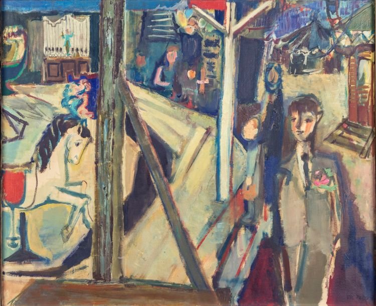 Kirmes, 1958. Mischtechnik auf Leinwand, 80 x 100 cm.